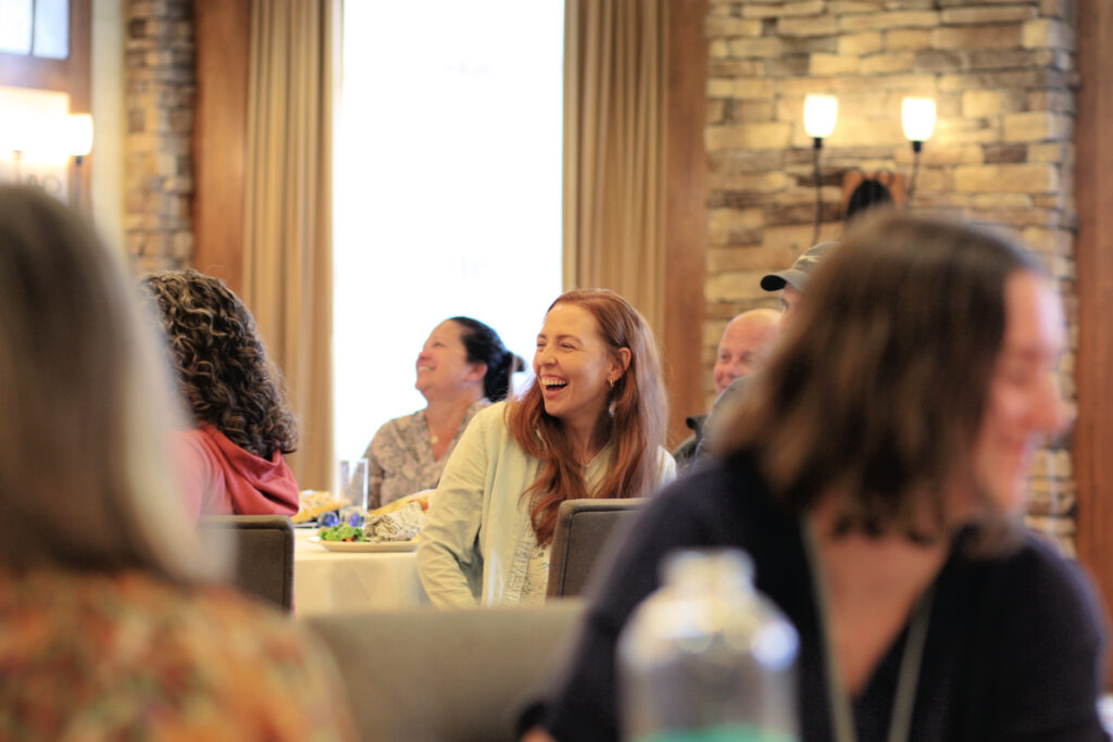 “What an experience. It is still settling in and landing within me, and I find myself with a lift, a tenderness, a joy, and a bubble of laughter that I know come from the weekend. . . . You went big with the laughter and food and dancing and singing and teaching and then very detailed with the pens, notes, mugs, gifts, etc. It all added up to feel like a giant hug. What a lavish, soup-to-nuts experience that we didn’t know how much we needed.”